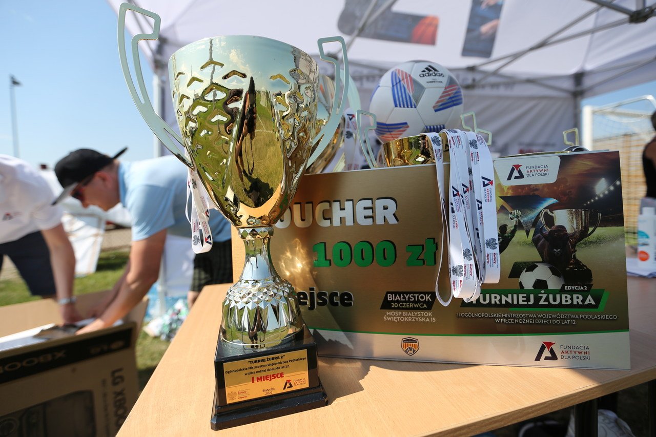 Fundacja Aktywni dla Polski zaprasza na trzecią edycję Turnieju „Turniej Żubra”, który odbędzie się 05 06 2022 na terenie stadionu MOSP Białystok ul. Świętokrzyska 15. Mamy nadzieję, że podobnie jak w latach ubiegłych zgromadzi on ponad 200 dzieci pasjonujących się piłką nożną z całej Polski nie tylko Województwa Podlaskiego. Widząc duże zainteresowanie udziałem w imprezie coraz młodszych dzieci w tym roku postanowiliśmy przeprowadzić rywalizacje w dwóch kategoriach wiekowych: dzieci do lat 10 i dzieci do lat 12. W turnieju mogą brać udział zarówno chłopcy jak i dziewczynki a także dzieci niepełnosprawne. Zdobywcy trzech pierwszych miejsc dostaną puchary oraz nagrody – koszulki okolicznościowe. Wszyscy uczestnicy zawodów dostaną medale. Turniejowi jak co roku będzie towarzyszył „mini festyn” sportowy z kilkoma konkursami i animacjami związanymi z piłką nożną w których będą uczestniczyć dzieci pomiędzy meczami swoich drużyn i po skończeniu rywalizacji w turnieju. W trakcie imprezy uczestnicy zostaną zaopatrzeni w pakiety startowe gdzie będą się znajdowały kanapki, owoce i picie. Podobnie jak w roku ubiegłym będzie można u specjalisty z zakresu treningu ogólnorozwojowego i motorycznego dowiedzieć się jak zadbać o harmonijny rozwój dziecka, zarówno uprawiającego piłkę nożną wyczynowo jak i amatorsko. Doświadczony trener, przeprowadzi diagnozę stanu podstawowych cech motorycznych i udzieli wskazówek jak podnosić sprawność i ogólna kondycje całego ciała u dzieci. Wszyscy uczestniczący w Turnieju Żubra trenerzy będą ze szczególną uwaga przyglądać się dzieciom biorącym udział w wydarzeniu zarówno w turnieju jak i dzieciom biorącym udział w strefie atrakcji pod kontem wychwytywania utalentowanych dzieci, do regularnego trenowania w klubach i szkółkach piłkarskich. Dodatkową atrakcją będzie Wystawa plakatów historycznych. W trakcie turnieju zostanie zorganizowana z okazji 100 –lecia odzyskania nieodległości wystawa plakatów poświęcana mieszkańcom województwa Podlaskiego oraz polskim sportowcom , którzy na przestrzeni ostatnich stu lat wykazali się szczególnym bohaterstwem i postawą patriotyczną. Zostaną przedstawione ich osiągnięcia sportowe oraz działalność na rzecz kraju. Wszelkie informacje dotyczące szczegółowego przebiegu imprezy oraz znajdują się w regulaminach turnieju.