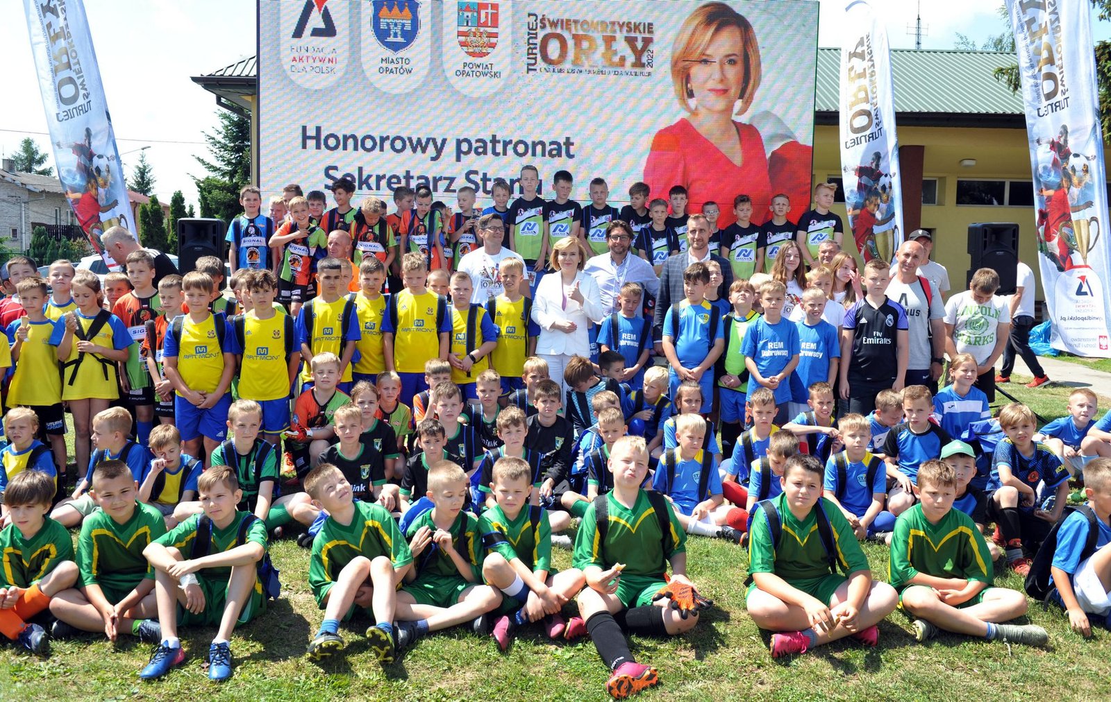 – Jest mi niezmiernie miło, że mogę wam w bliskim mojemu sercu Opatowie wręczyć nagrody, a jeszcze milej widzieć na waszych twarzach uśmiech – mówiła do zawodników Anna Krupka, Sekretarz Stanu w Ministerstwie Sportu i Turystyki – honorowego patrona rozgrywek. – Cieszę się, że „Świętokrzyskie Orły” zapraszają do rywalizacji tak dużo drużyn i młodych osób, które aktywnie spędzają wolny czas. Pokrywa się to z prowadzoną przez nasze ministerstwo misją promocji aktywności. Gratuluję tym, którzy stanęli na podium, ale też wszystkim grającym w turnieju, bo sam udział jest niezmiernie istotny i służy rozwijaniu sportowych umiejętności. Jestem przekonana, że dzięki waszej pracy i uporowi w przyszłości będziecie osiągać wielkie, sportowe sukcesy. Życzę wytrwałości na tej drodze. Dziękuję fundacji „Aktywni dla Polski” za organizację turnieju.